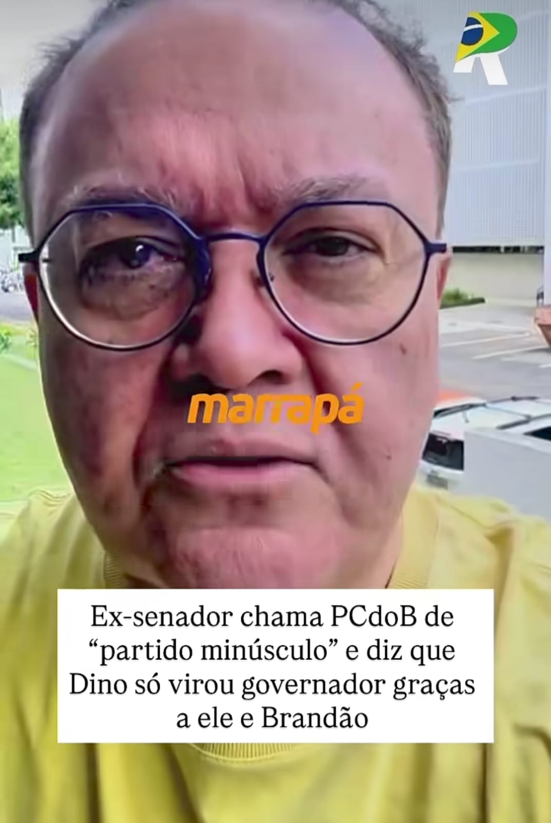 No vídeo, o ex senador sustenta que Dino “não teria sido nem candidato” sem o suporte das legendas maiores. “Como seria candidato sozinho por um partido minúsculo como o PCdoB? No Brasil ninguém disputa governo só com o próprio partido, nem quem está sentado na cadeira”, disse.