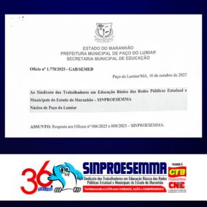 Em resposta aos Ofícios nº 006/2025 e 008/2025 encaminhados pelo núcleo do Sinproesemma de Paço do Lumiar à Secretaria Municipal de Educação do município (SEMED), o sindicato teve resposta sobre as principais reivindicações da categoria.