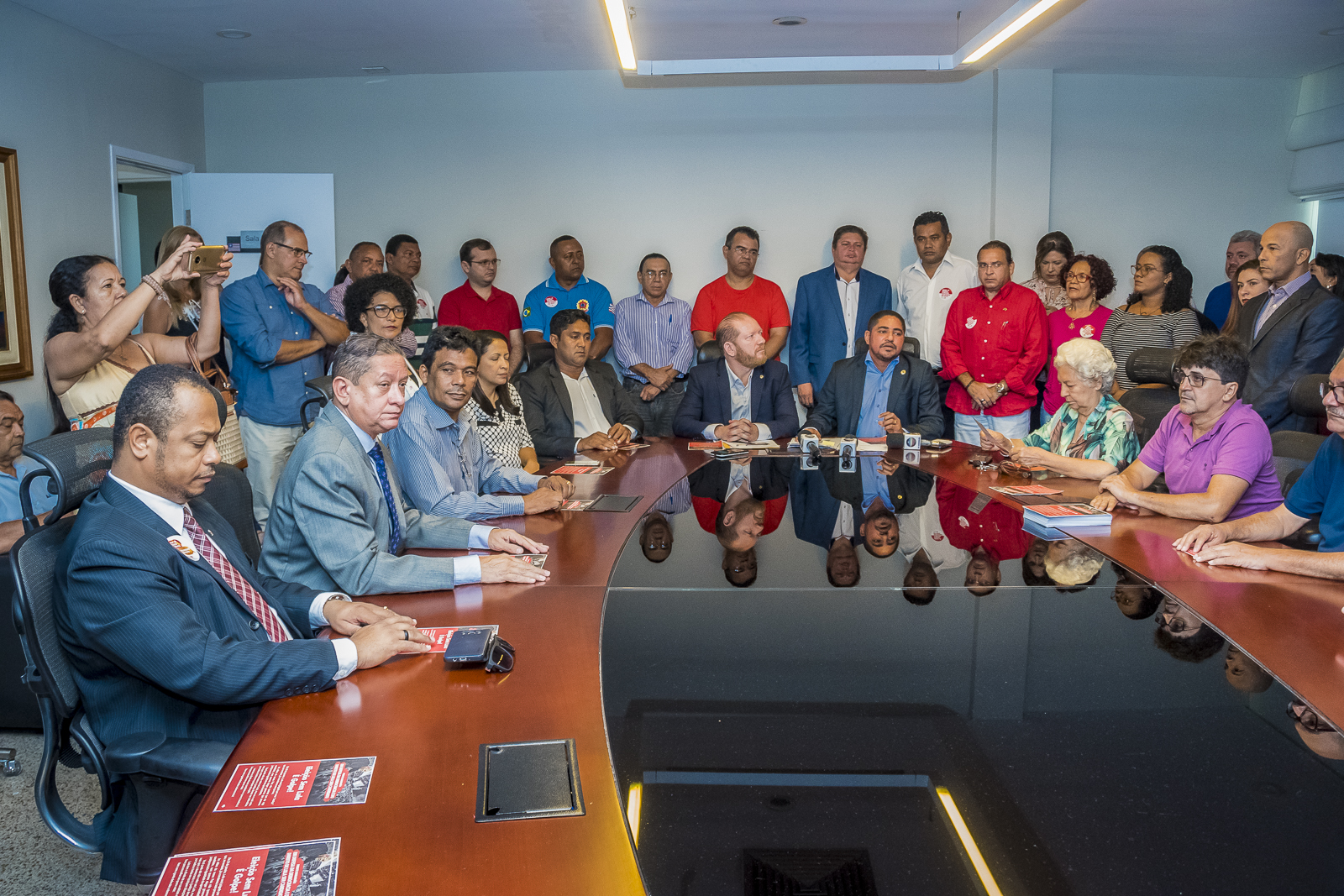 A oficialização da “Frente Parlamentar em Defesa da Democracia e do Direito de Lula ser candidato” aconteceu na sala de reuniões da Presidência. Os deputados Francisca Primo (PCdoB) e Toca Serra (PTC) prestigiaram o evento.