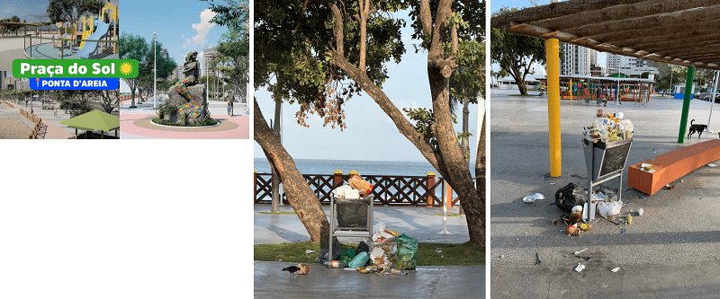 Não demorou nada para aparecer os primeiros incômodos com as ações do Governo Brandão na Grande Ilha. A Praça do Sol – umas obras mais festejadas pela população de São Luís, já aparece os primeiros sinais de descaso da gestão do prefeito Eduardo Braide(PSD). E foi só o primeiro final de semana. As lixeiras entupidas já são sinais do pode acontecer daqui pra frente em todas as obras com a marca do Governo do Estado. Falta ao gestor da capital conceitos republicanos para tocar a coisa pública.